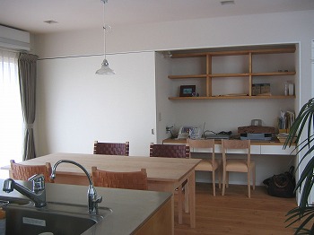 キッチンを眺めるダイニング。反対の壁面はPCスペースに
