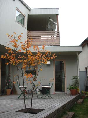 L型の箱のような家にマッチしています。