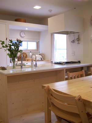 無垢パイン材×人工大理石のキッチン。FORMのオーダーキッチン